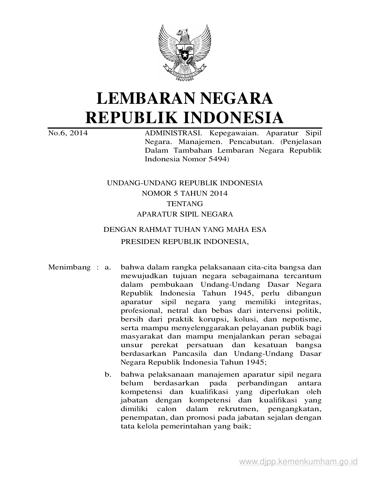 UU Nomor 5 Tahun 2014 | Undang-Undang Nomor 5 Tahun 2014 tentang APARATUR SIPIL NEGARA