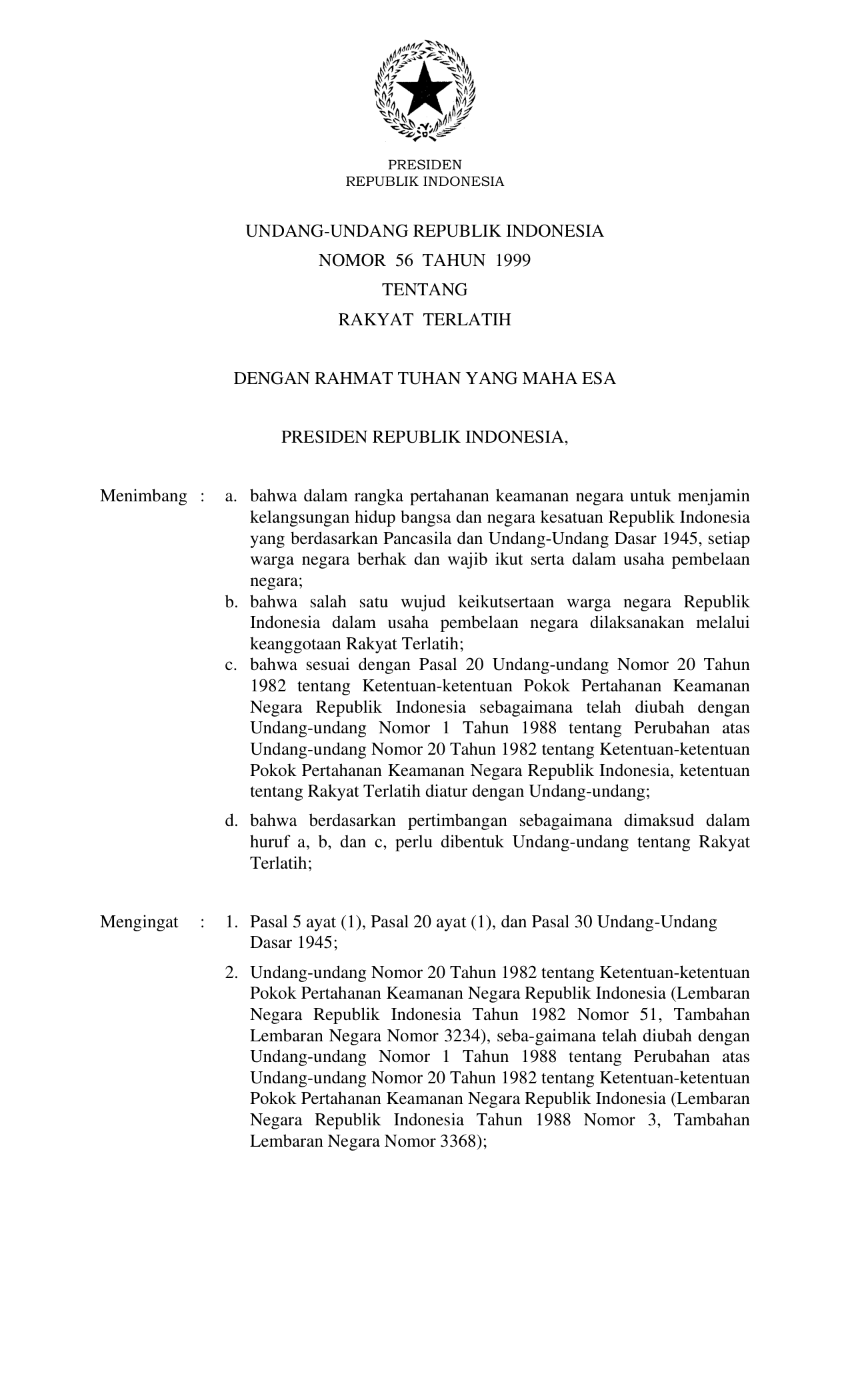 UU Nomor 56 Tahun 1999 | Undang-Undang Nomor 56 Tahun 1999 tentang RAKYAT TERLATIH