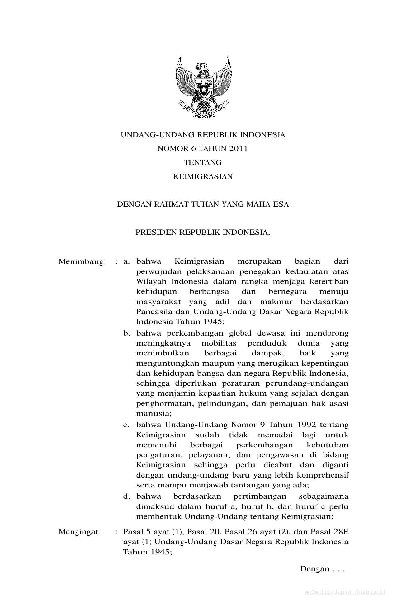UU Nomor 6 Tahun 2011 | Undang-Undang Nomor 6 Tahun 2011 tentang KEIMIGRASIAN