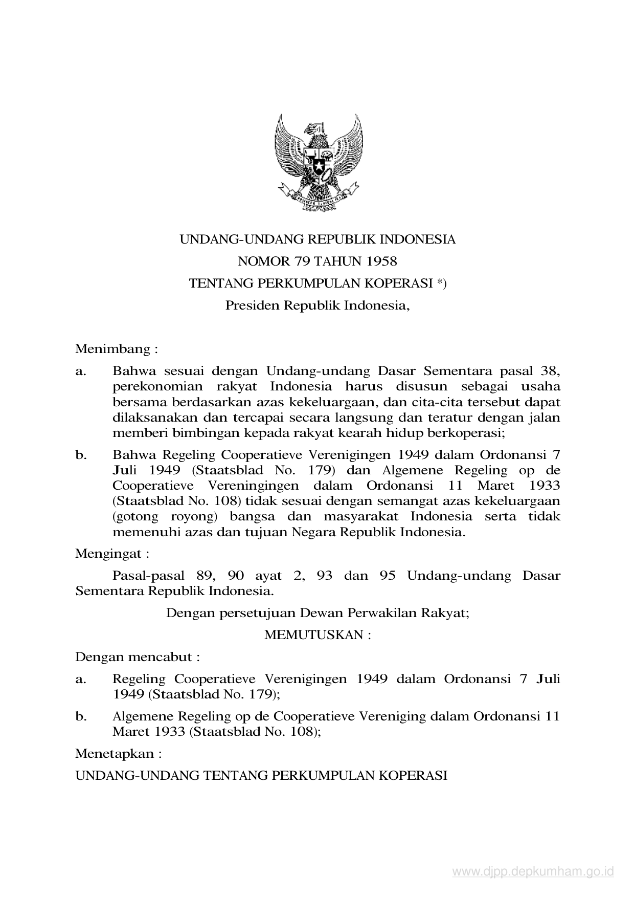 UU Nomor 79 Tahun 1958 | Undang-Undang Nomor 79 Tahun 1958 tentang TENTANG PERKUMPULAN KOPERASI