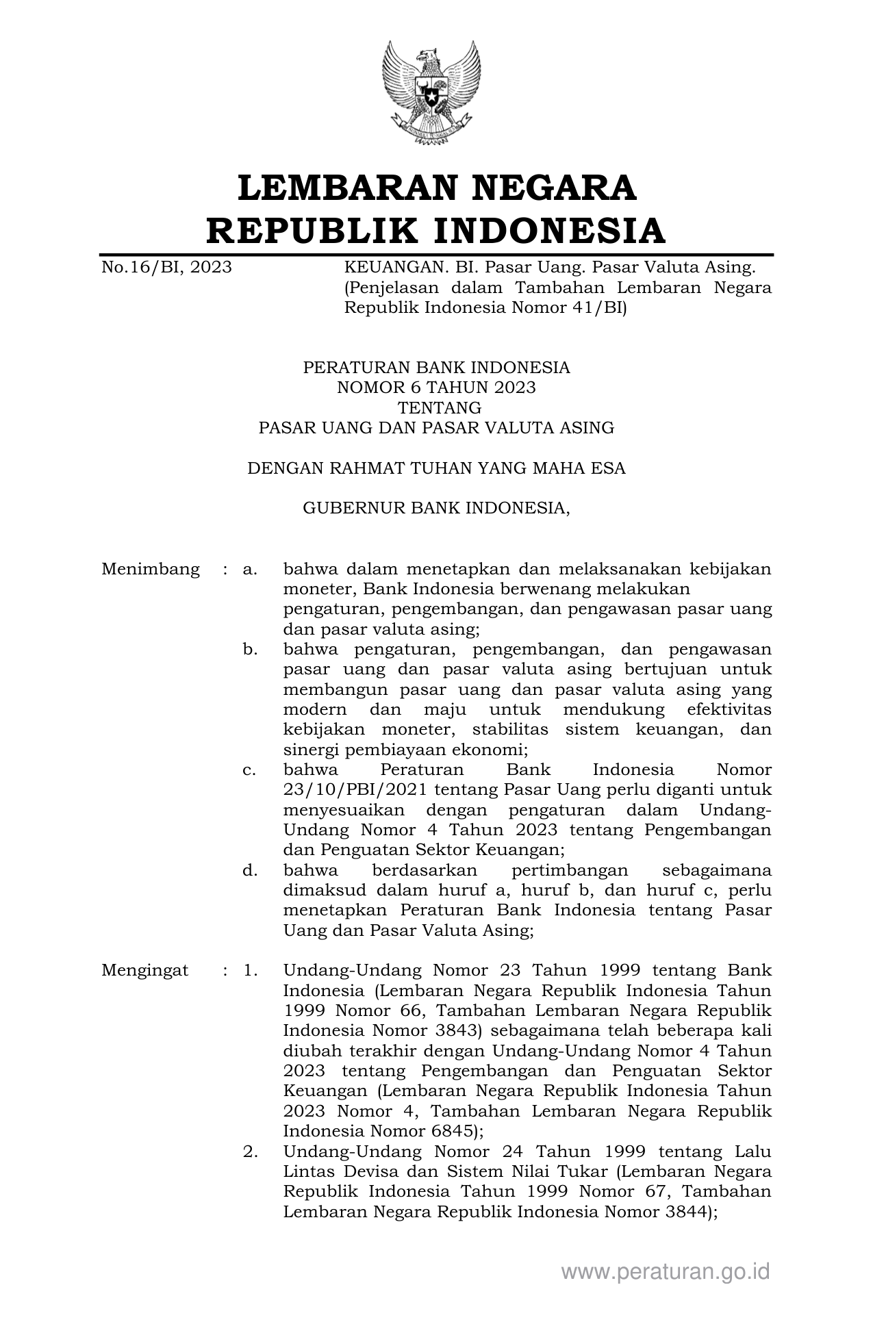 PERBAN Nomor 6 Tahun 2023 | Peraturan Badan Nomor 6 Tahun 2023 tentang PASAR UANG DAN PASAR VALUTA ASING