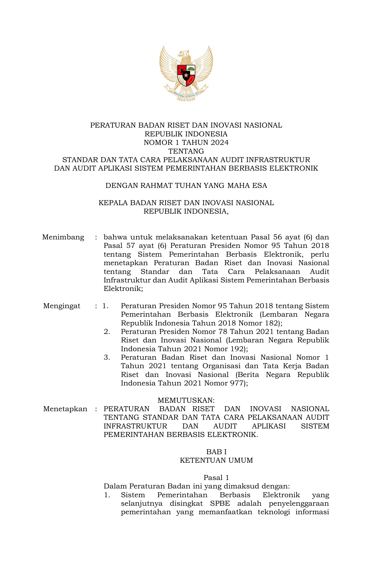 PERBAN Nomor 1 Tahun 2024 | Peraturan Badan Nomor 1 Tahun 2024 tentang Standar dan Tata Cara Pelaksanaan Audit Infrastruktur dan Audit Aplikasi Sistem Pemerintahan Berbasis Elektronik
