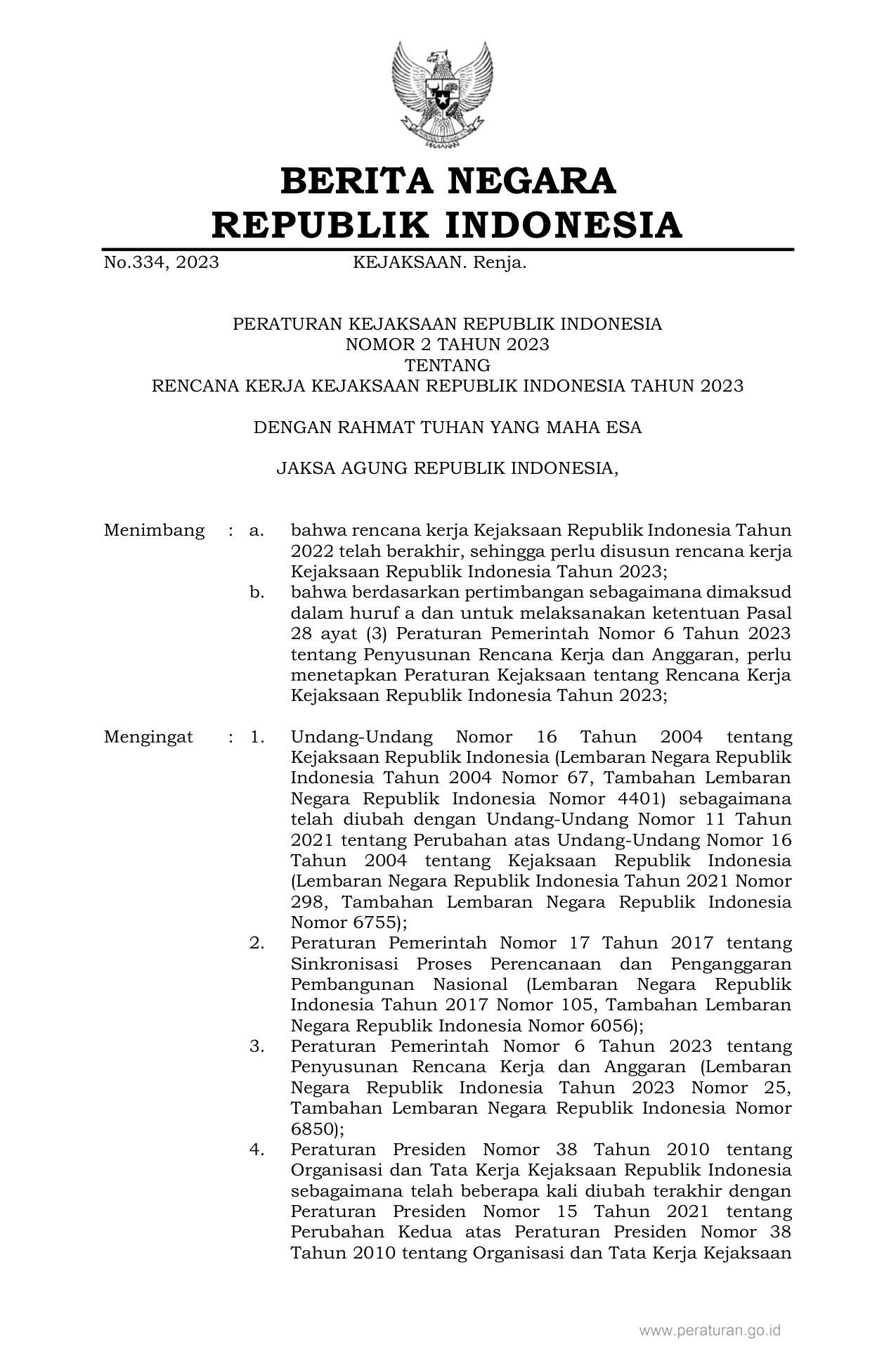 PERBAN Nomor 2 Tahun 2023 | Peraturan Badan Nomor 2 Tahun 2023 tentang RENCANA KERJA KEJAKSAAN REPUBLIK INDONESIA TAHUN 2023
