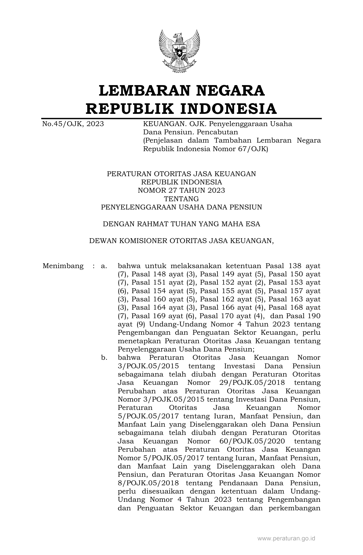 PERBAN Nomor 27 Tahun 2023 | Peraturan Badan Nomor 27 Tahun 2023 tentang PENYELENGGARAAN USAHA DANA PENSIUN