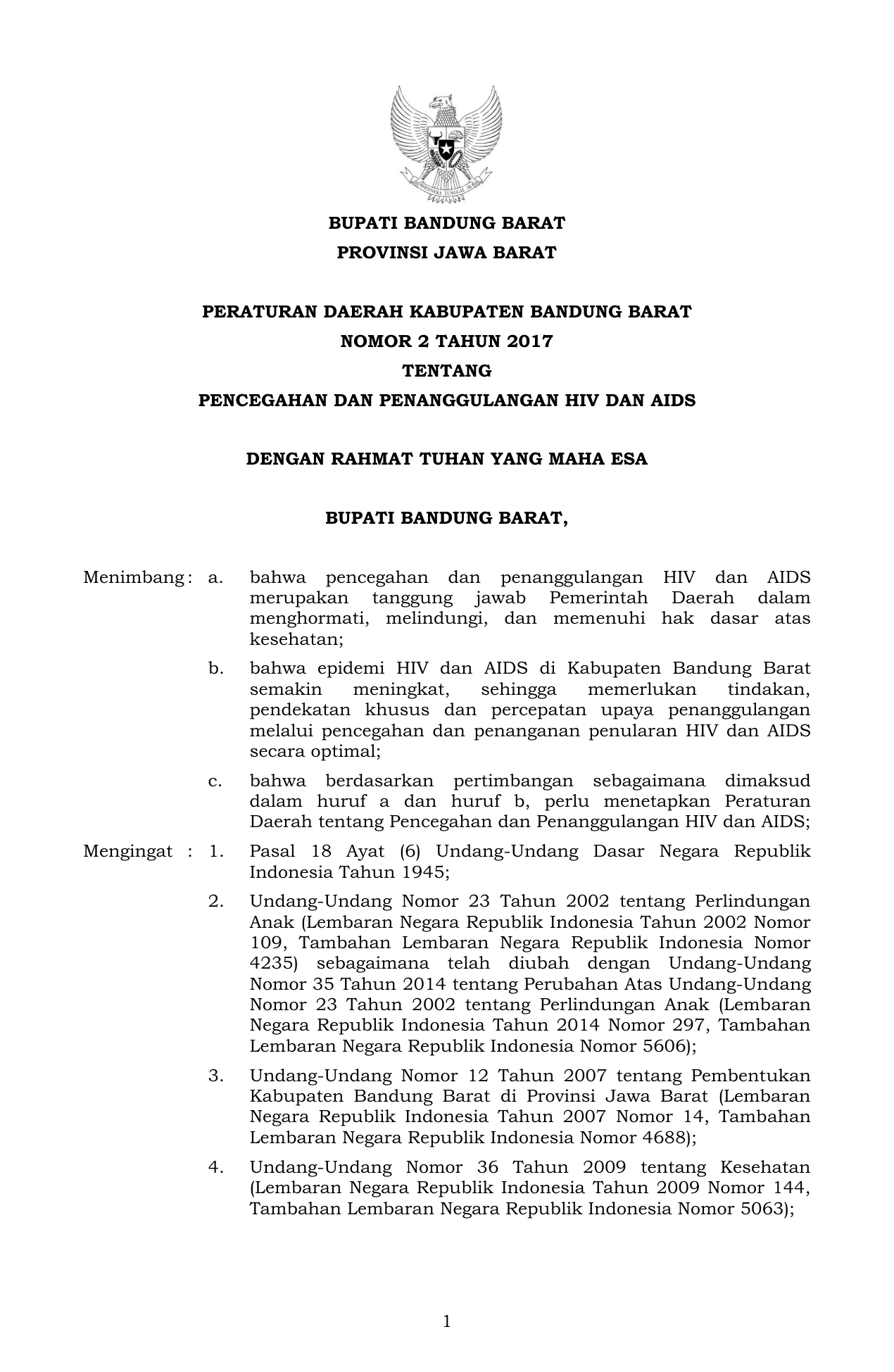 PERDA Nomor 2 Tahun 2017 | Peraturan Daerah Nomor 2 Tahun 2017 tentang PENCEGAHAN DAN PENANGGULANGAN HIV DAN AIDS