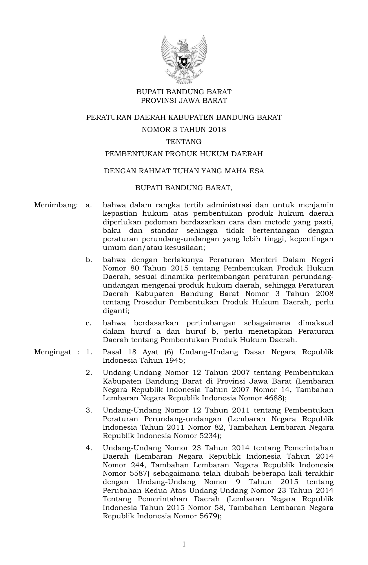 PERDA Nomor 3 Tahun 2018 | Peraturan Daerah Nomor 3 Tahun 2018 tentang PEMBENTUKAN PRODUK HUKUM DAERAH