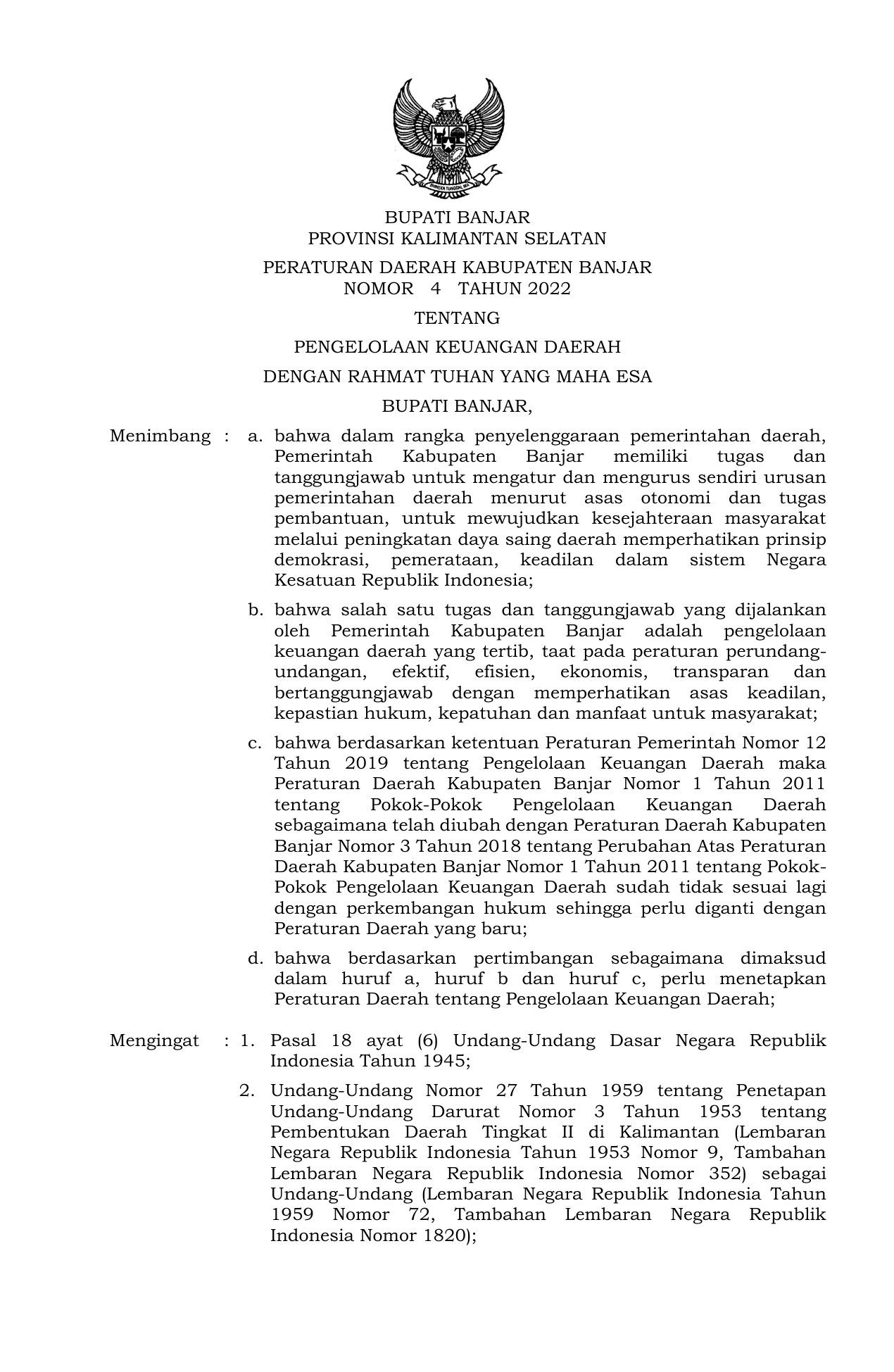 PERDA Nomor 4 Tahun 2022 | Peraturan Daerah Nomor 4 Tahun 2022 tentang engelolaan Keuangan Daerah