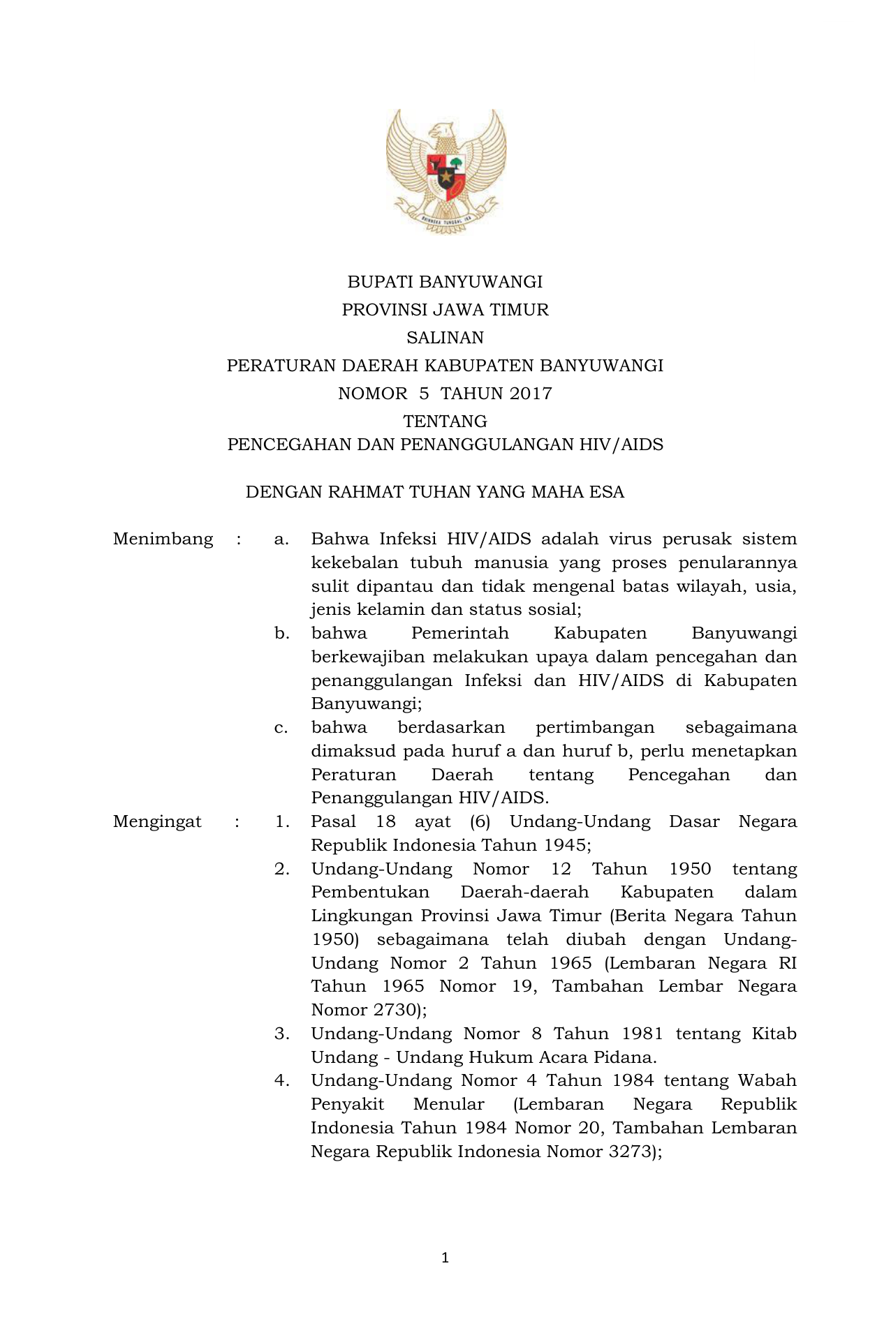 PERDA Nomor 5 Tahun 2017 | Peraturan Daerah Nomor 5 Tahun 2017 tentang PENCEGAHAN DAN PENANGGULANGAN HIV/AIDS