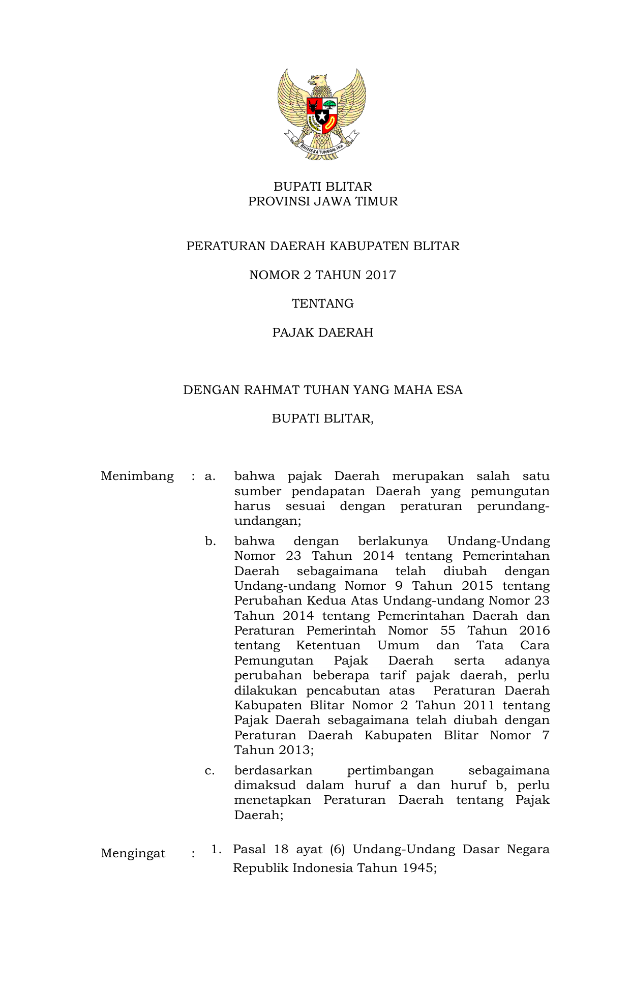 PERDA Nomor 2 Tahun 2017 | Peraturan Daerah Nomor 2 Tahun 2017 tentang Pajak Daerah