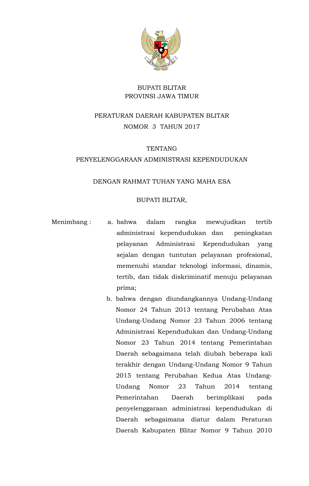 PERDA Nomor 3 Tahun 2017 | Peraturan Daerah Nomor 3 Tahun 2017 tentang Penyelenggaraan Administrasi
