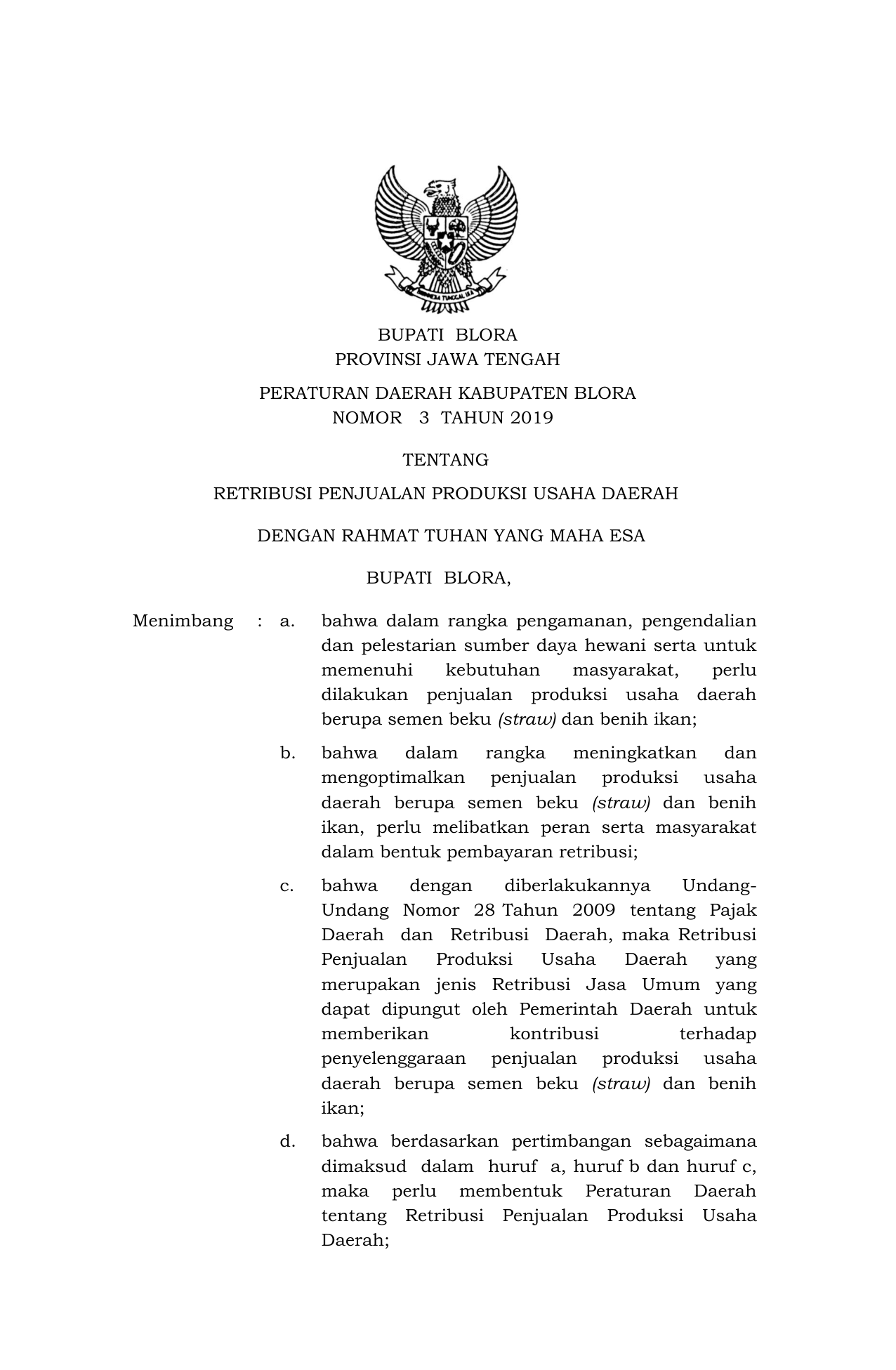 PERDA Nomor 3 Tahun 2019 | Peraturan Daerah Nomor 3 Tahun 2019 tentang Retribusi Penjualan Produksi Usaha Daerah