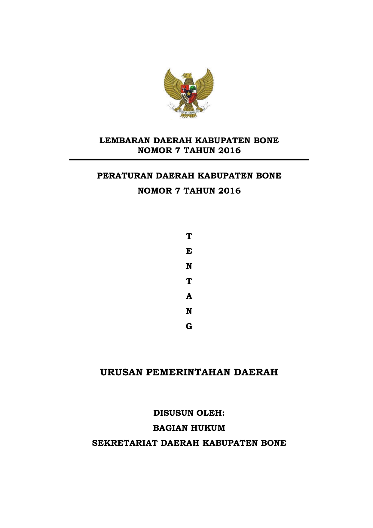 NOREG PERATURAN DAERAH KABUPATEN BONE PROVINSI SULAWESI SELATAN B.HK.HAM.7.121.16 TAHUN 2016
