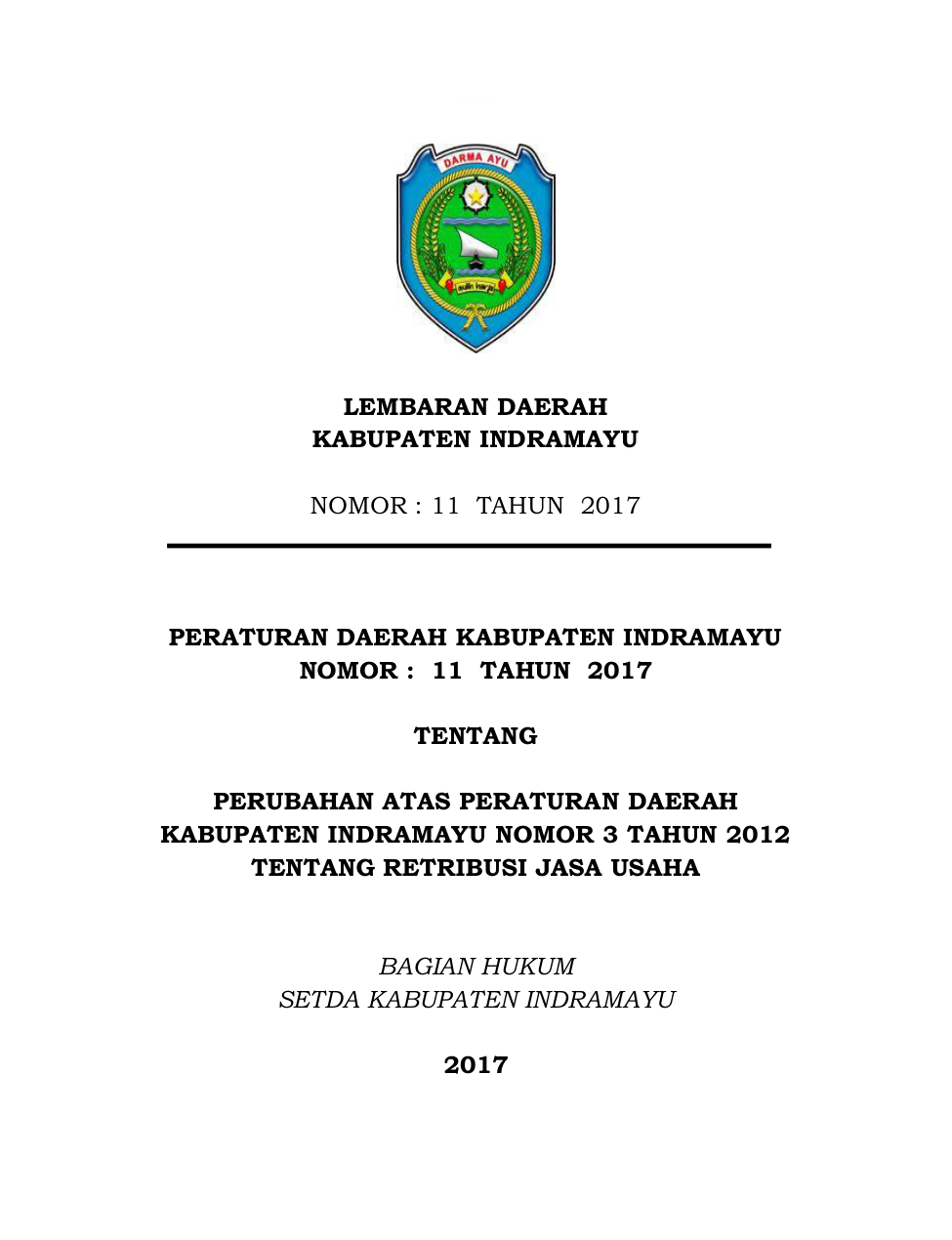PERDA Nomor 11 Tahun 2017 | Peraturan Daerah Nomor 11 Tahun 2017 tentang PERUBAHAN ATAS PERATURAN DAERAHKABUPATEN INDRAMAYU NOMOR 3 TAHUN 2012TENTANG RETRIBUSI JASA USAHA