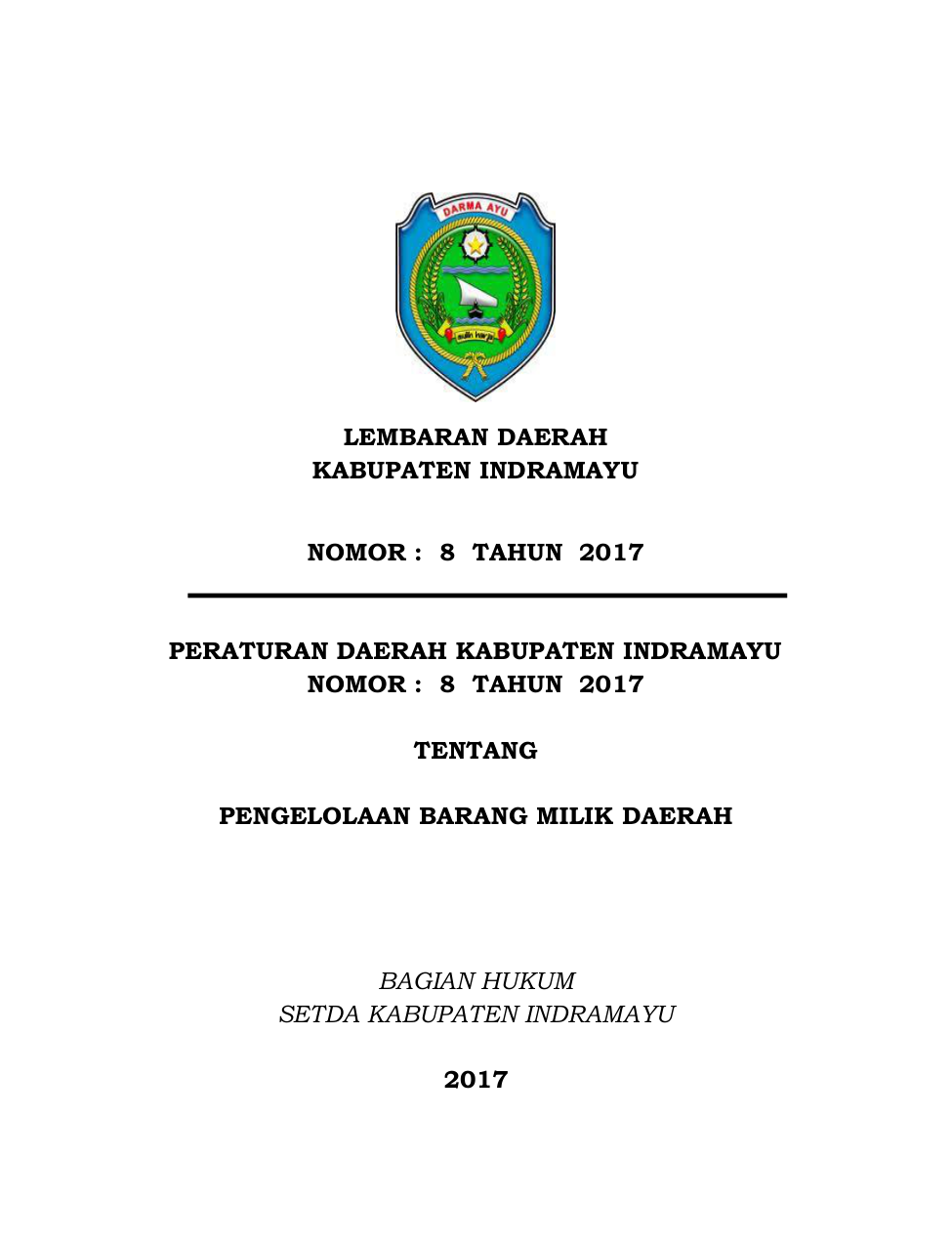 PERDA Nomor 8 Tahun 2017 | Peraturan Daerah Nomor 8 Tahun 2017 tentang PENGELOLAAN BARANG MILIK DAERAH
