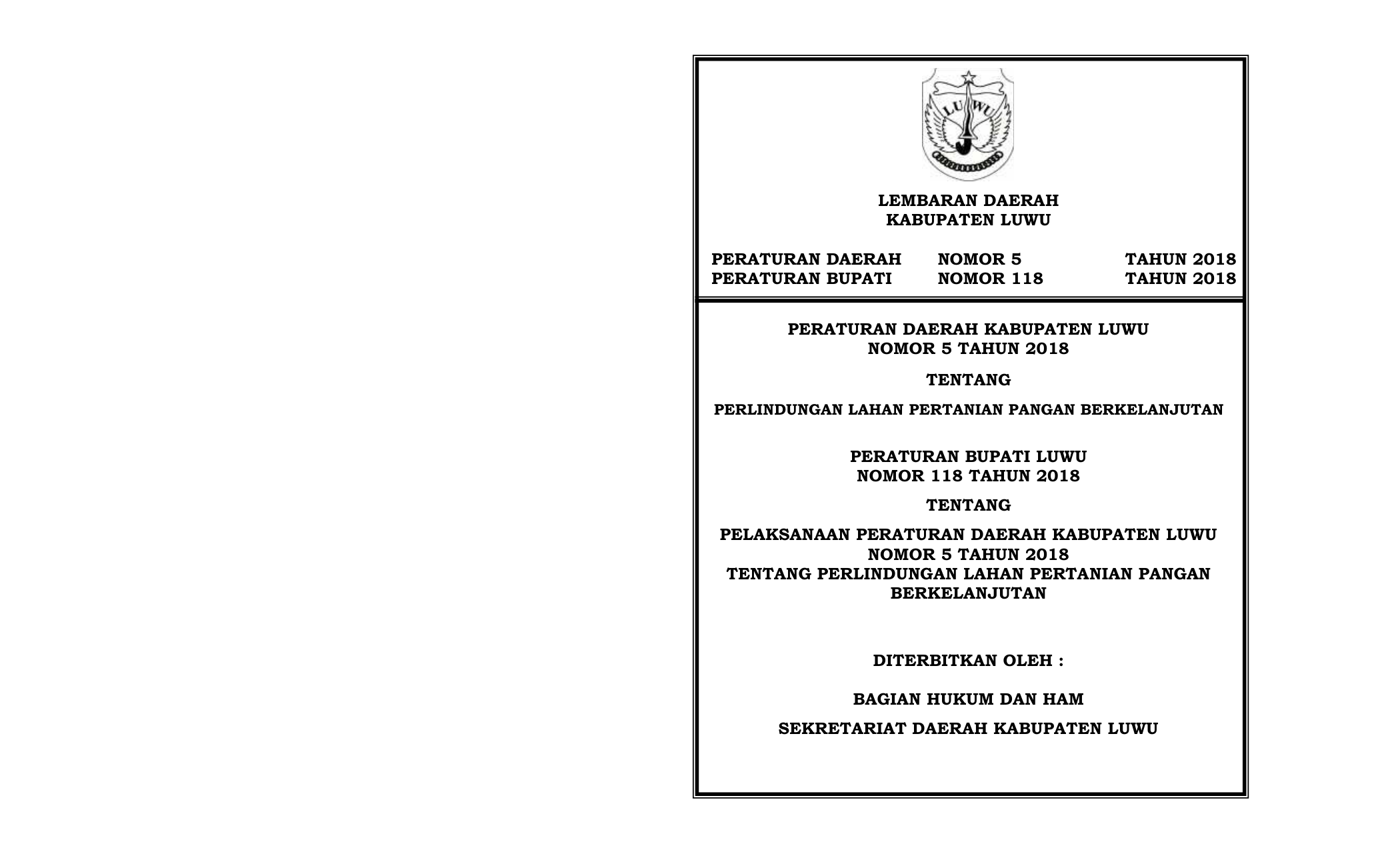 PERDA Nomor 5 Tahun 2018 | Peraturan Daerah Nomor 5 Tahun 2018 tentang PERLINDUNGAN LAHAN PERTANIAN PANGAN BERKELANJUTAN