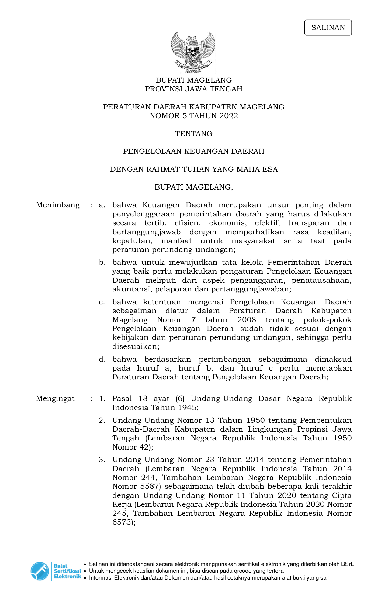 PERDA Nomor 5 Tahun 2022 | Peraturan Daerah Nomor 5 Tahun 2022 tentang PENGELOLAAN KEUANGAN DAERAH