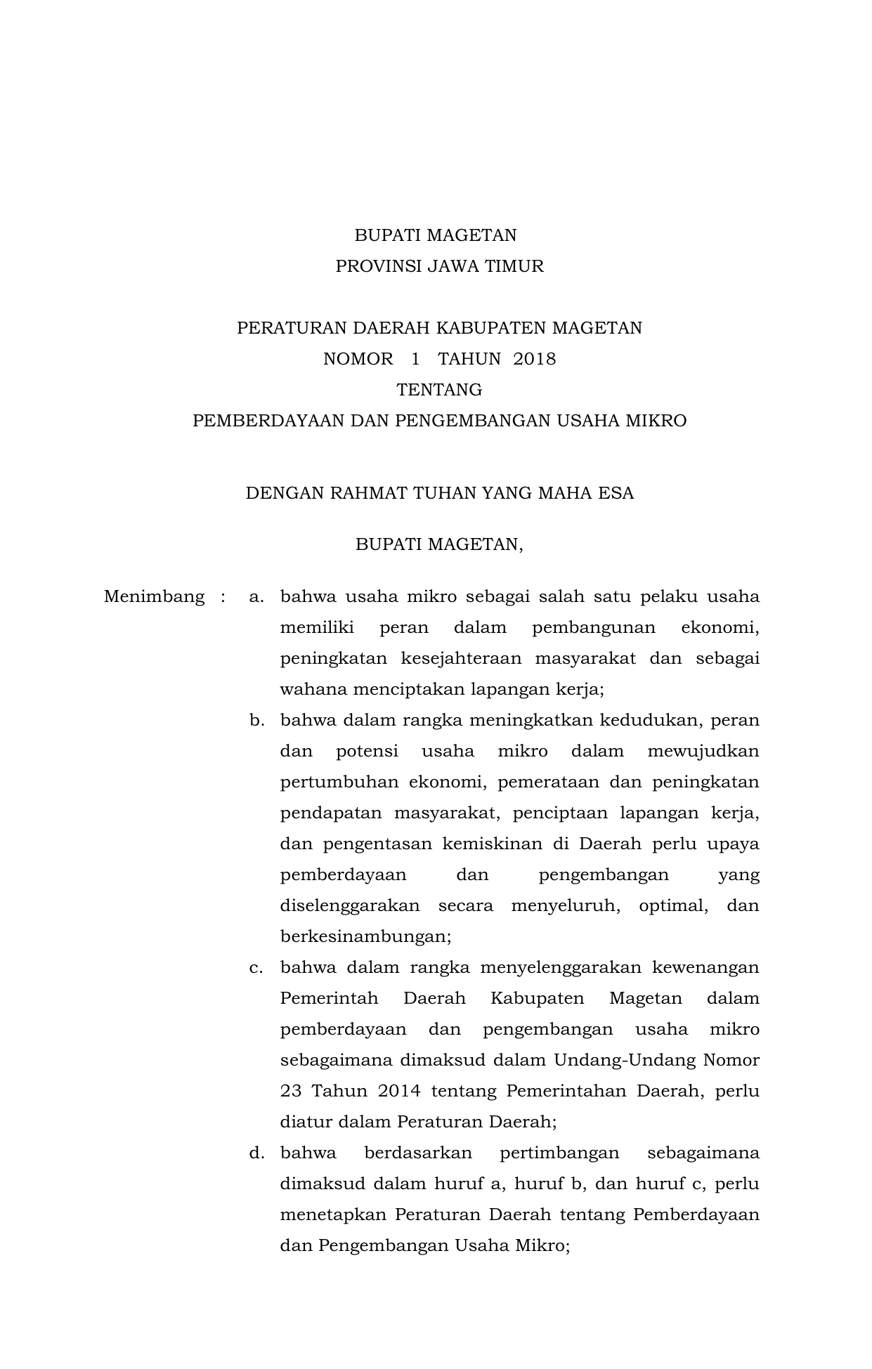 PERDA Nomor 1 Tahun 2018 | Peraturan Daerah Nomor 1 Tahun 2018 tentang Peraturan Daerah (PERDA) tentang Pemberdayaan dan Pengembangan Usaha Mikro