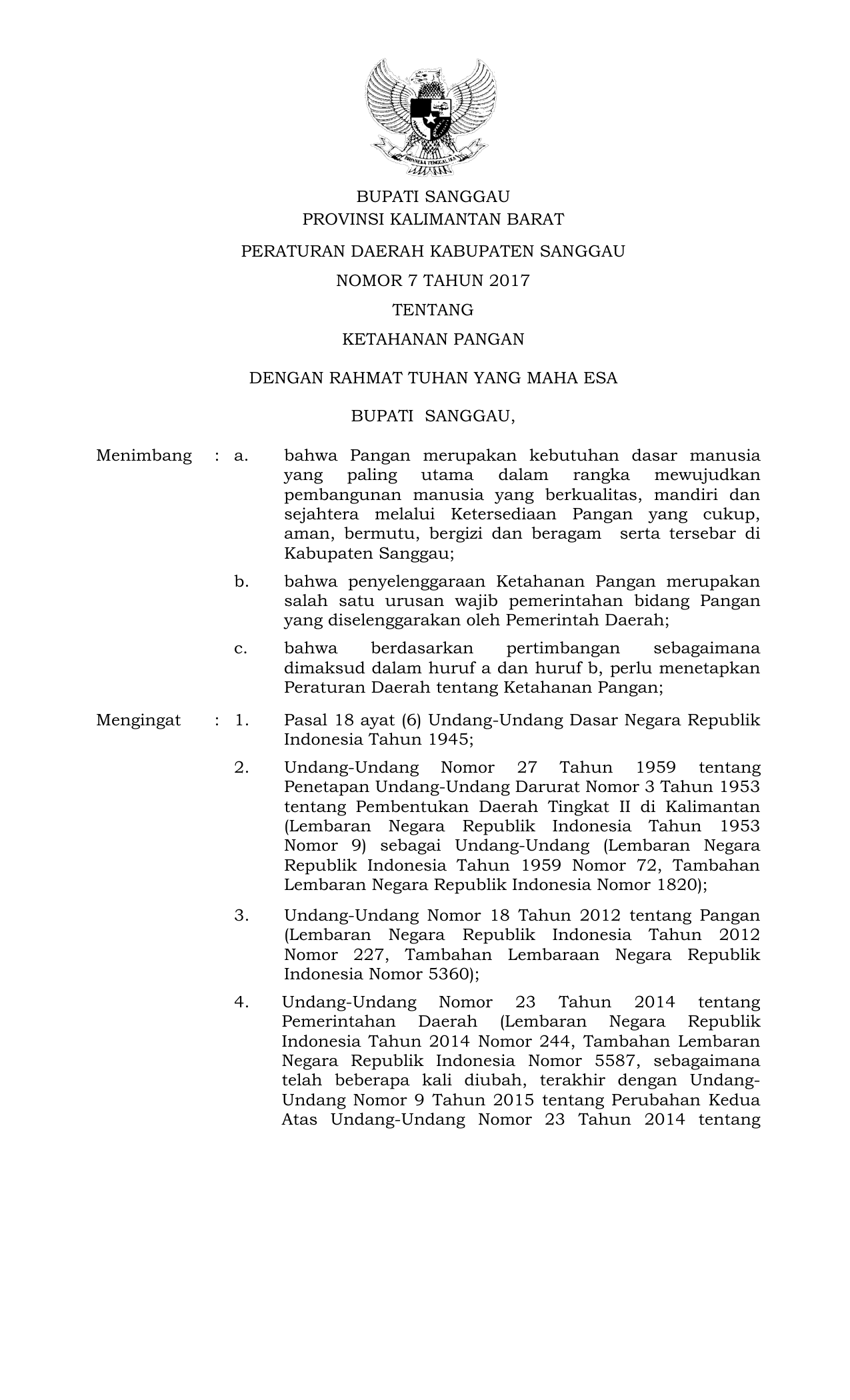 PERDA Nomor 7 Tahun 2017 | Peraturan Daerah Nomor 7 Tahun 2017 tentang KETAHANAN PANGAN