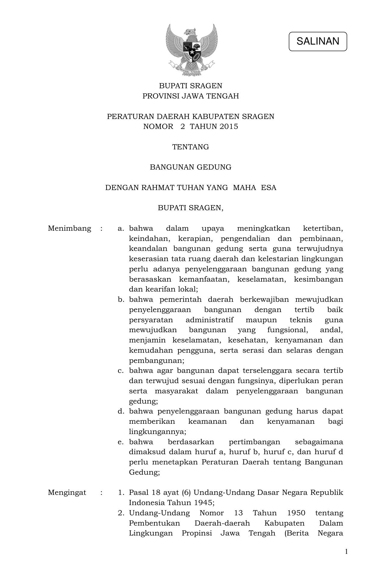 PERDA Nomor 2 Tahun 2015 | Peraturan Daerah Nomor 2 Tahun 2015 tentang BANGUNAN GEDUNG