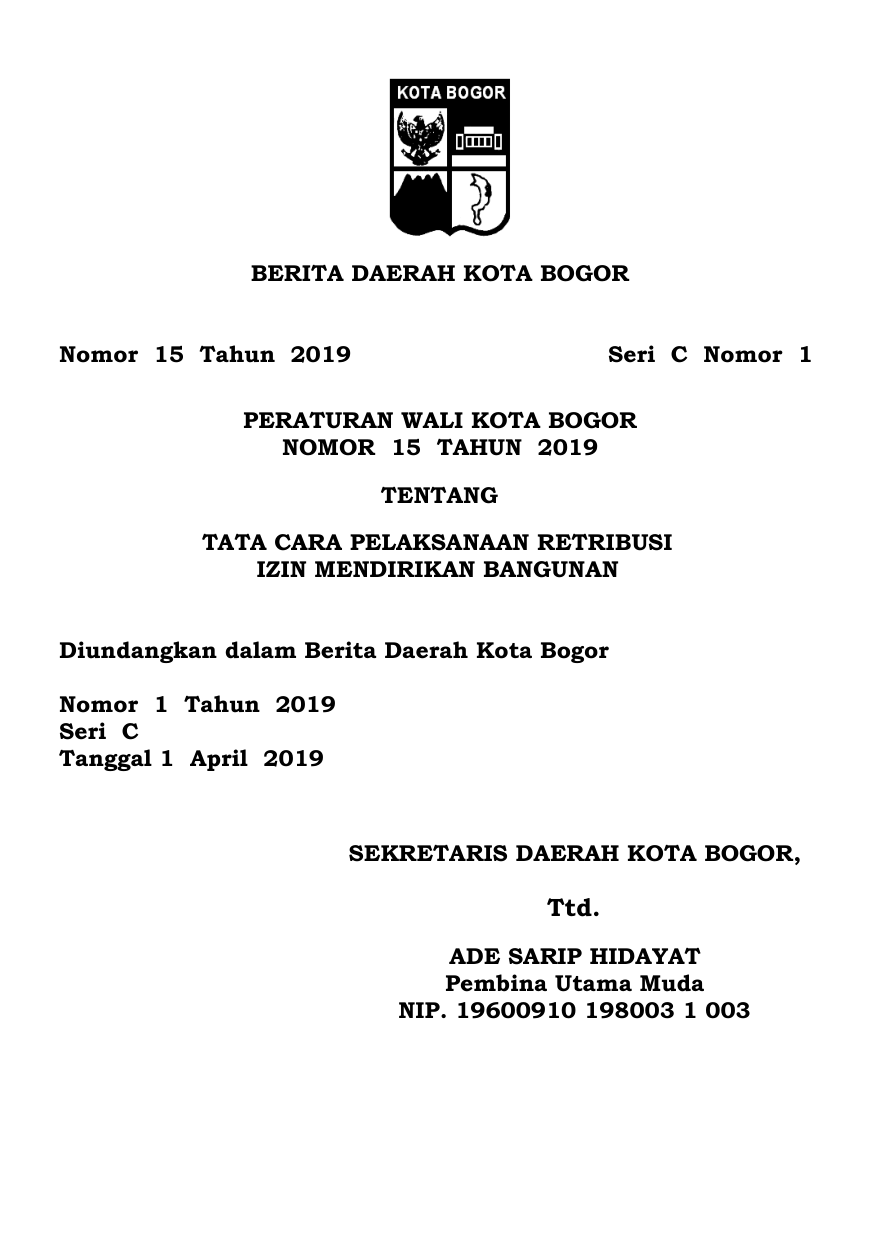 PERDA Nomor 15 Tahun 2019 | Peraturan Daerah Nomor 15 Tahun 2019 tentang TATA CARA PELAKSANAAN RETRIBUSI IZIN MENDIRIKAN BANGUNAN