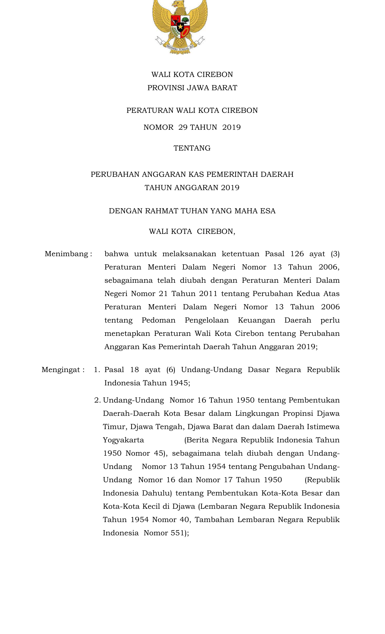 PERDA Nomor 29 Tahun 2019 | Peraturan Daerah Nomor 29 Tahun 2019 tentang PERUBAHAN ANGGARAN KAS PEMERINTAH DAERAH TAHUN ANGGARAN 2019