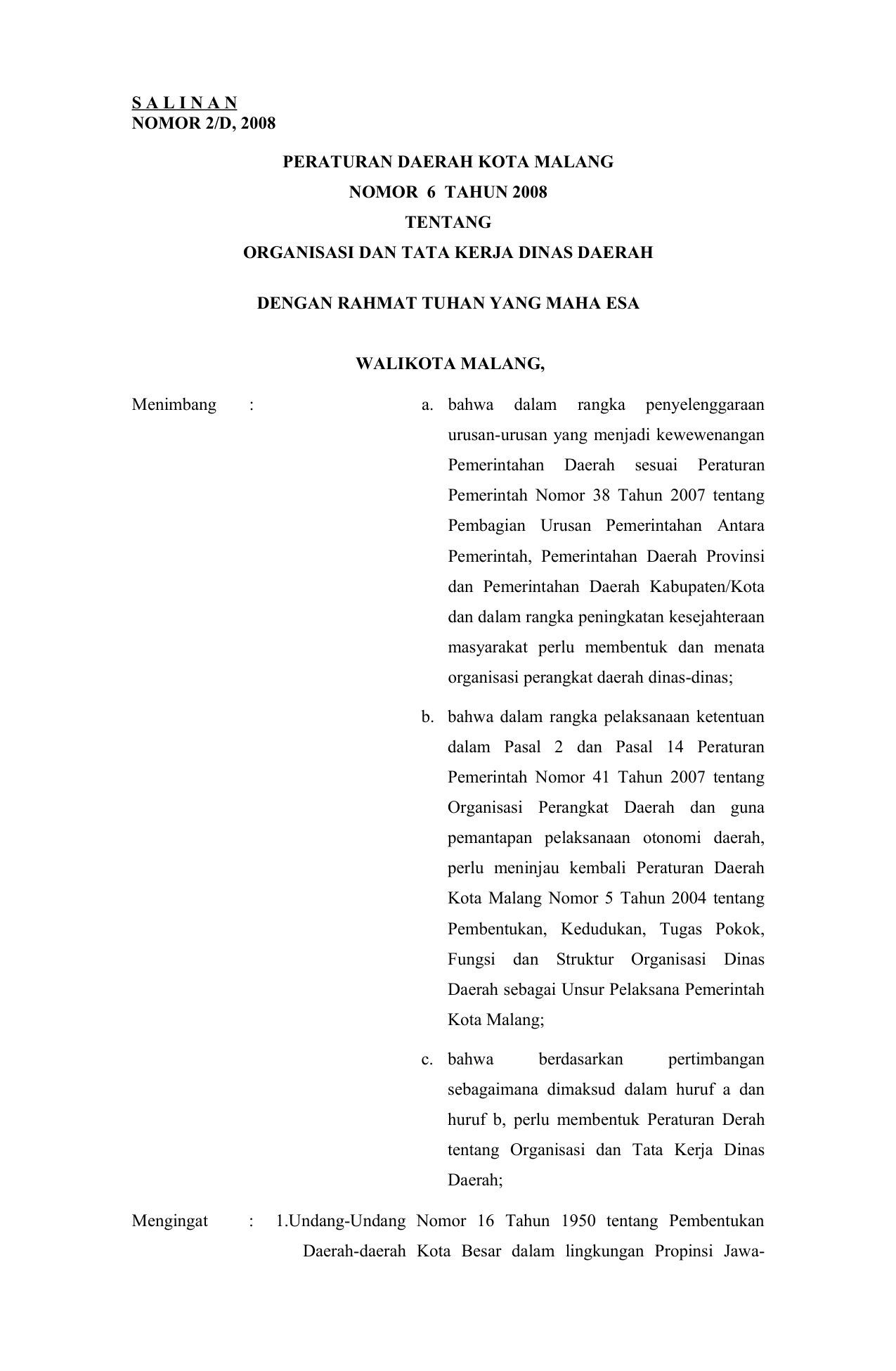 PERDA Nomor 6 Tahun 2022 | Peraturan Daerah Nomor 6 Tahun 2022 tentang ORGANISASI DAN TATA KERJA DINAS DAERAHDENGAN RAHMAT TUHAN YANG MAHA ESA