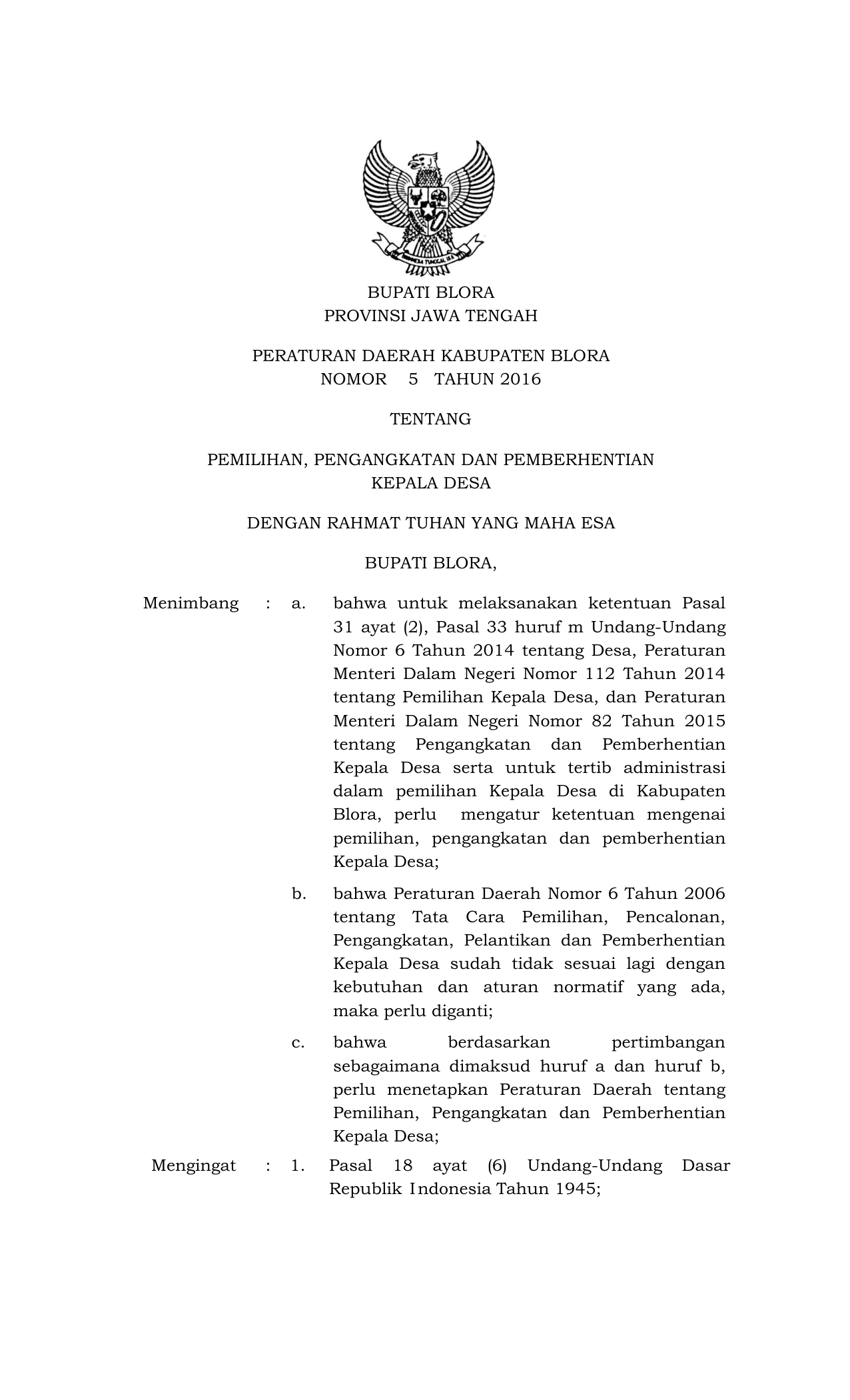 PERDA Nomor 5 Tahun 2016 | Peraturan Daerah Nomor 5 Tahun 2016 tentang Penyertaan Modal Pemerintah Kota Manado Kepada Perseroan Terbatas Bank Sulutgo