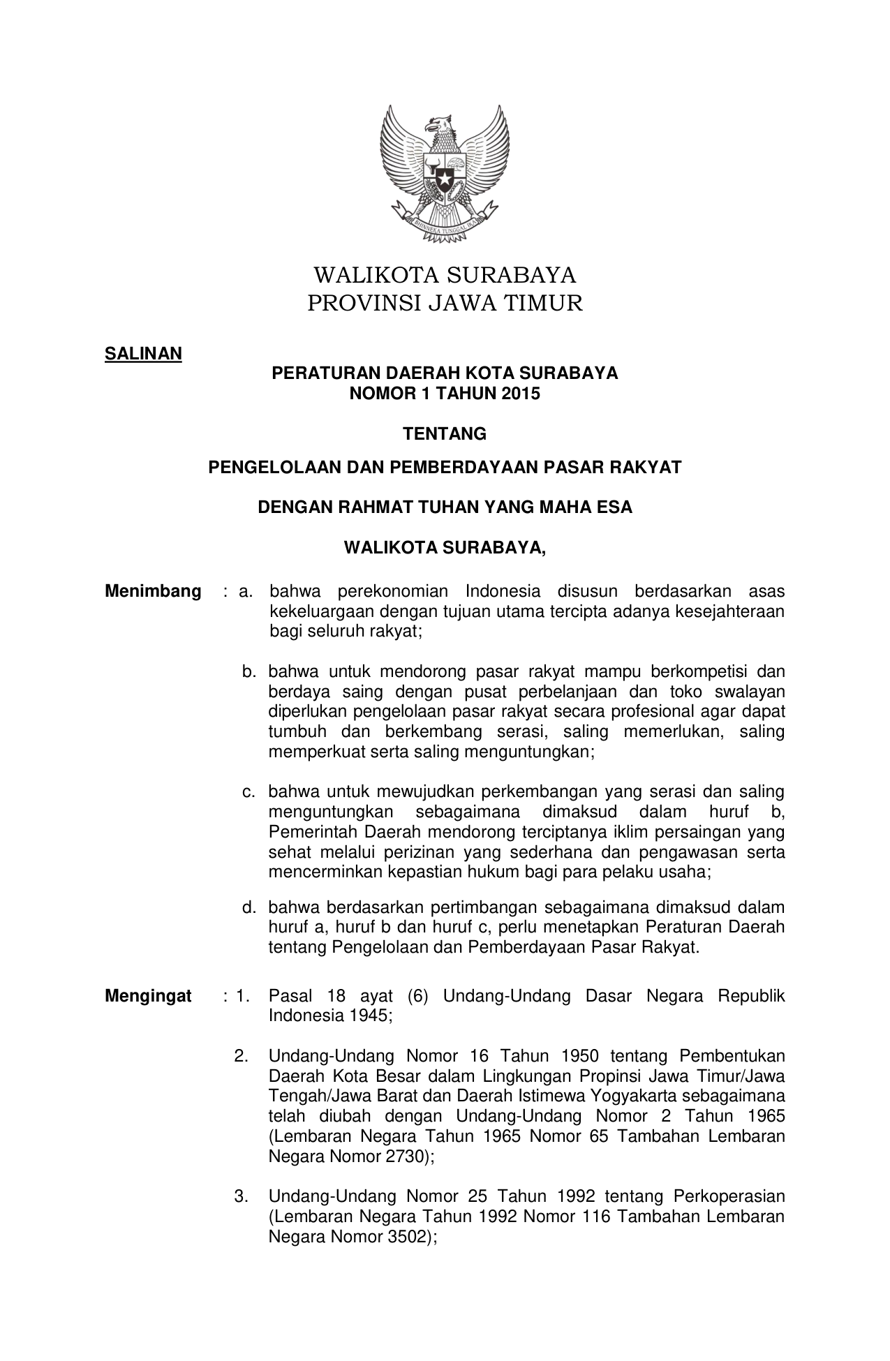 PERDA Nomor 1 Tahun 2015 | Peraturan Daerah Nomor 1 Tahun 2015 tentang PENGELOLAAN DAN PEMBERDAYAAN PASAR RAKYAT