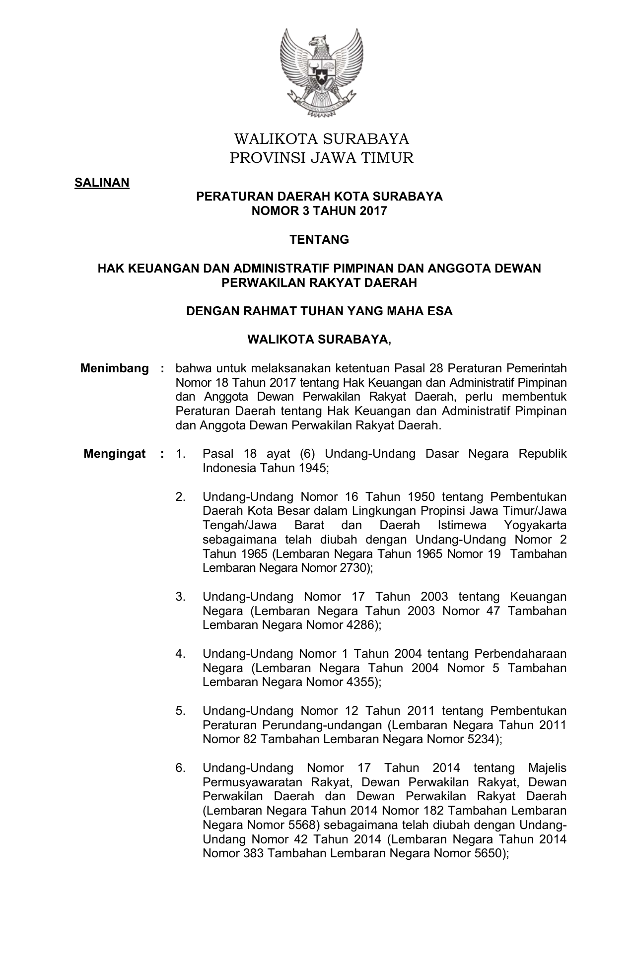 PERDA Nomor 3 Tahun 2017 | Peraturan Daerah Nomor 3 Tahun 2017 tentang HAK KEUANGAN DAN ADMINISTRATIF PIMPINAN DAN ANGGOTA DEWAN PERWAKILAN RAKYAT DAERAH