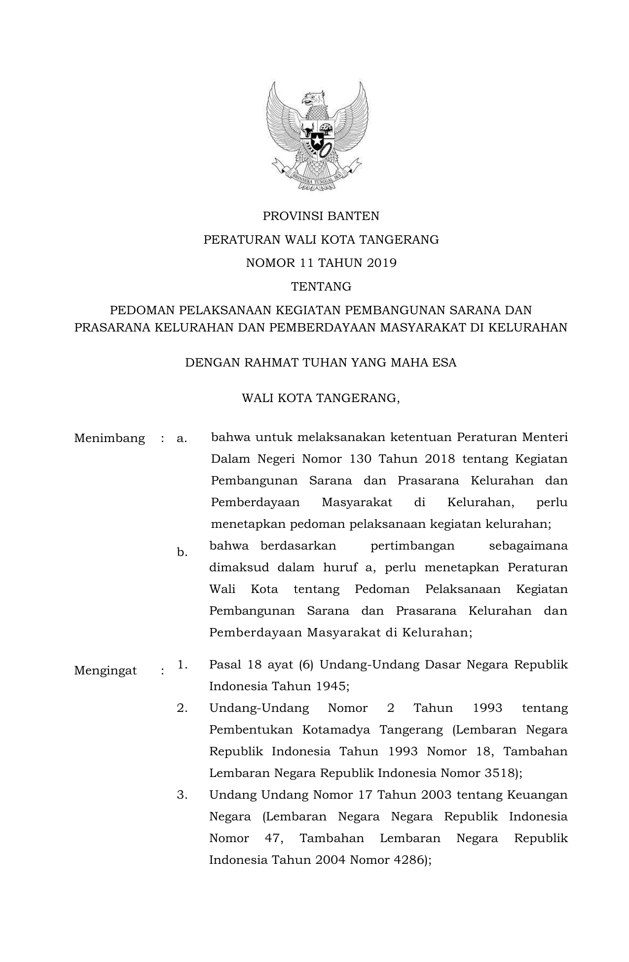 PERDA Nomor 11 Tahun 2019 | Peraturan Daerah Nomor 11 Tahun 2019 tentang PEDOMAN PELAKSANAAN KEGIATAN PEMBANGUNAN SARANA DAN PRASARANA KELURAHAN DAN PEMBERDAYAAN MASYARAKAT DI KELURAHAN