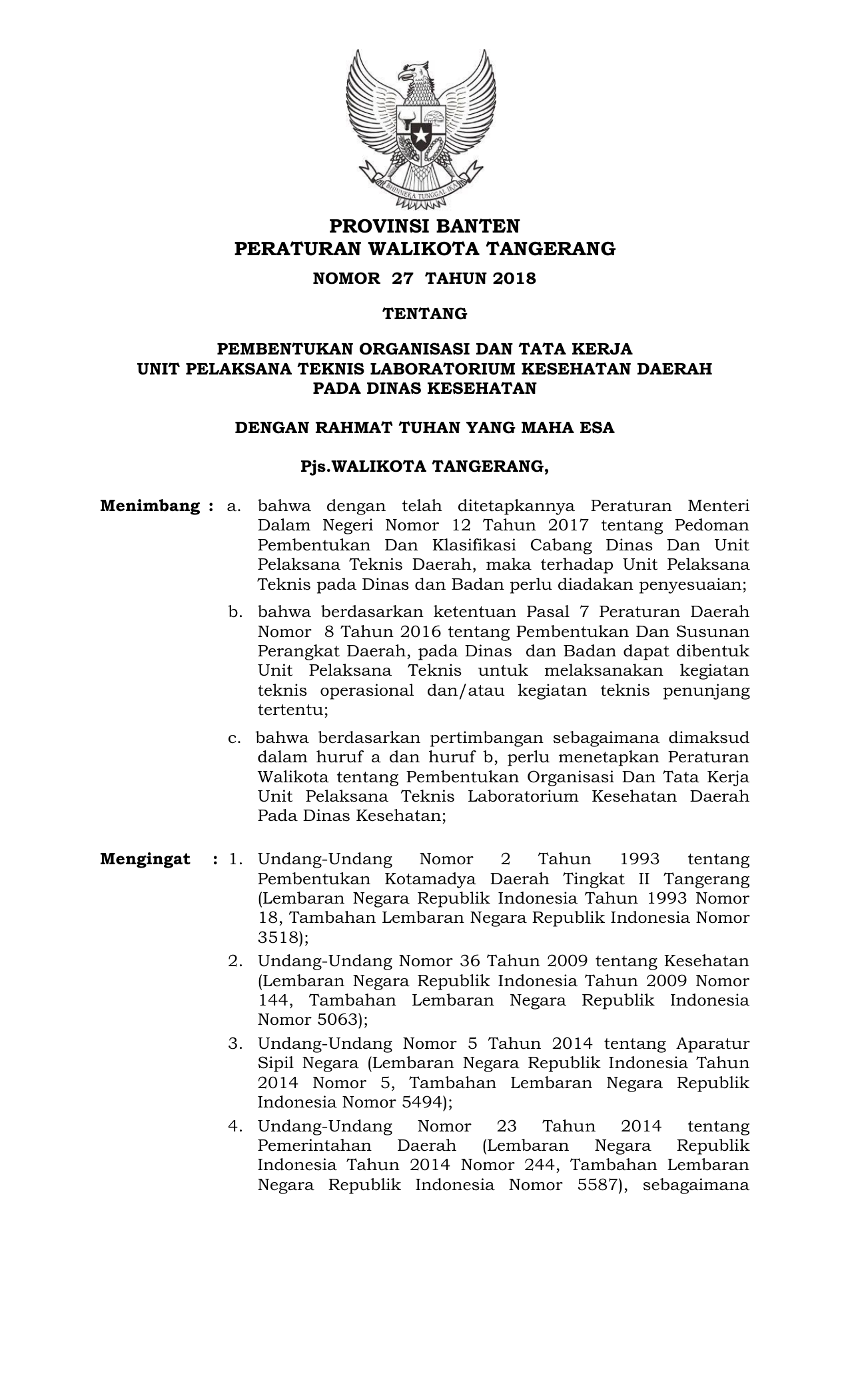 BERITA DAERAH KOTA TANGERANG TAHUN 2018 NOMOR 27