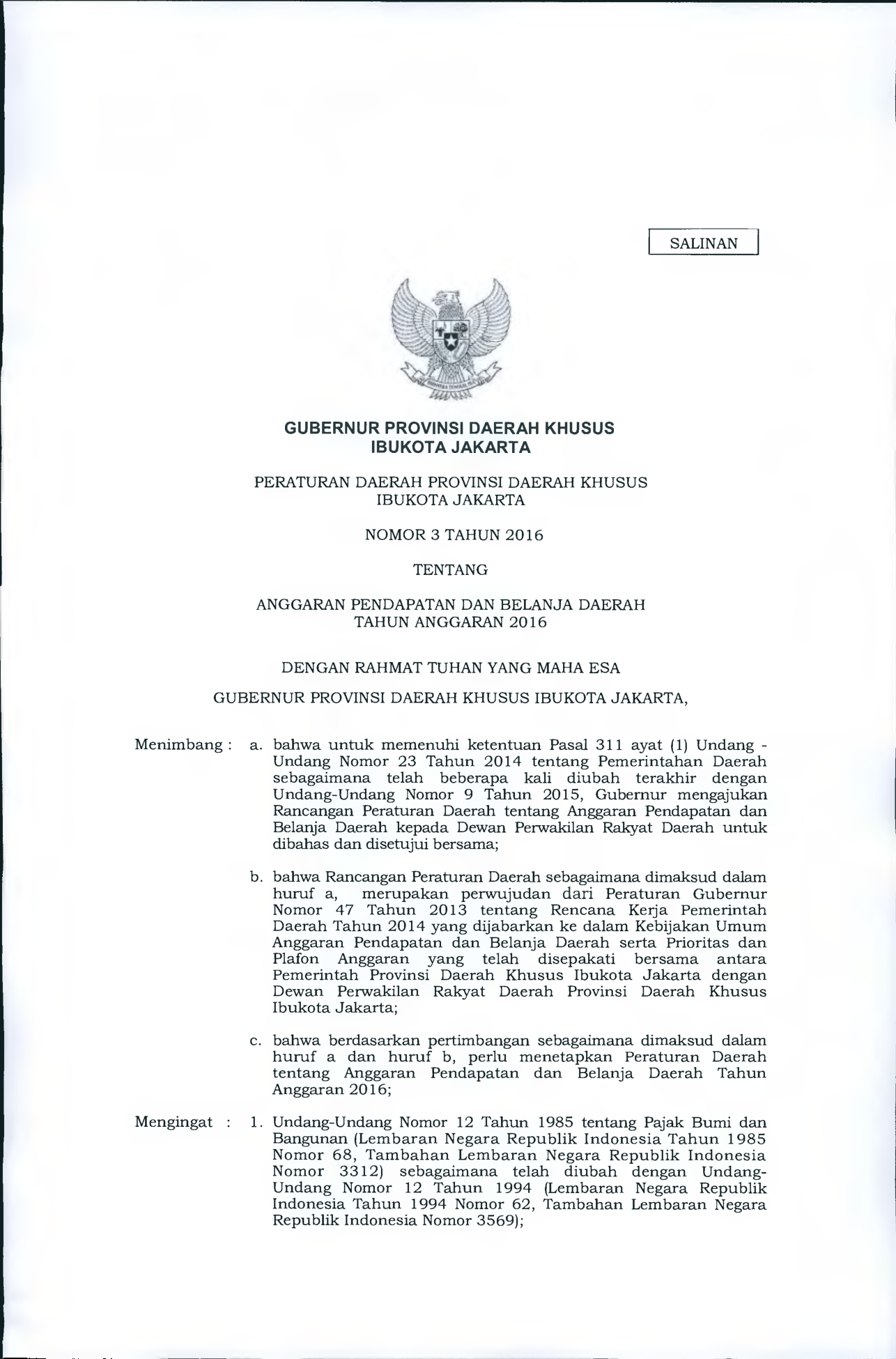 PERDA Nomor 3 Tahun 2016 | Peraturan Daerah Nomor 3 Tahun 2016 tentang ANGGARAN PENDAPATAN DAN BELANJA DAERAH TAHUN ANGGARAN 2016