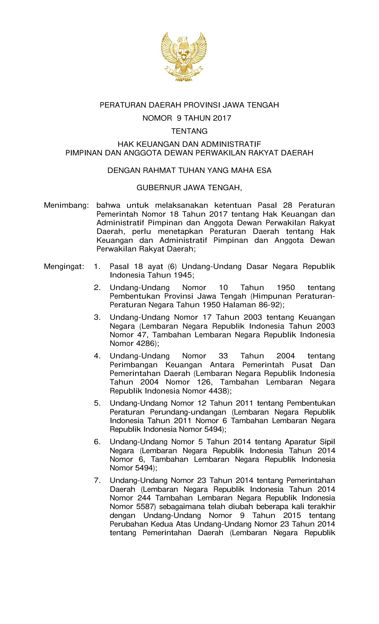 PERDA Nomor 9 Tahun 2017 | Peraturan Daerah Nomor 9 Tahun 2017 tentang HAK KEUANGAN DAN ADMINISTRATIF PIMPINAN DAN ANGGOTA DEWAN PERWAKILAN RAKYAT DAERAH