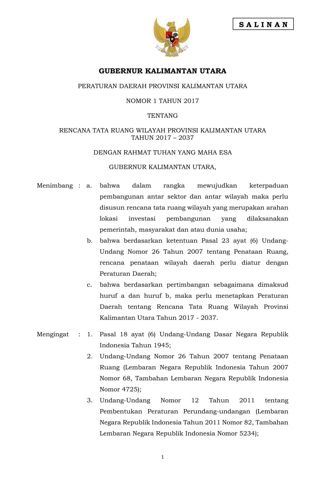 (1) Rencana struktur ruang Provinsi Kalimantan Utara ditetapkan dengan tujuan untuk meningkatkan pelayanan pusat kegiatan, meningkatkan kualitas dan jangkauan pelayanan jaringan prasarana.