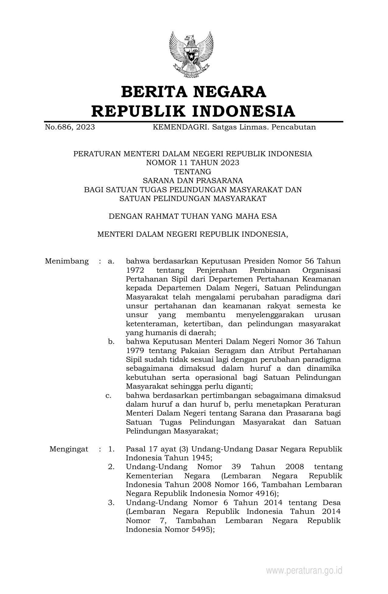 PERMEN Nomor 11 Tahun 2023 | Peraturan Menteri Nomor 11 Tahun 2023 tentang SARANA DAN PRASARANA BAGI SATUAN TUGAS PELINDUNGAN MASYARAKAT DAN SATUAN PELINDUNGAN MASYARAKAT