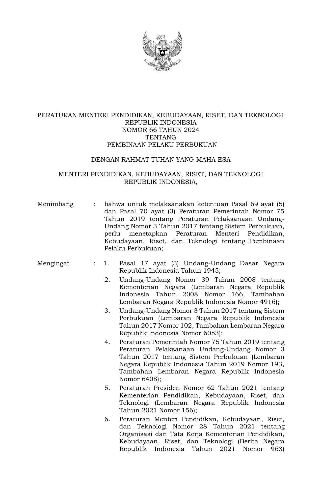 PERMEN Nomor 66 Tahun 2024 | Peraturan Menteri Nomor 66 Tahun 2024 tentang Pembinaan Pelaku Perbukuan