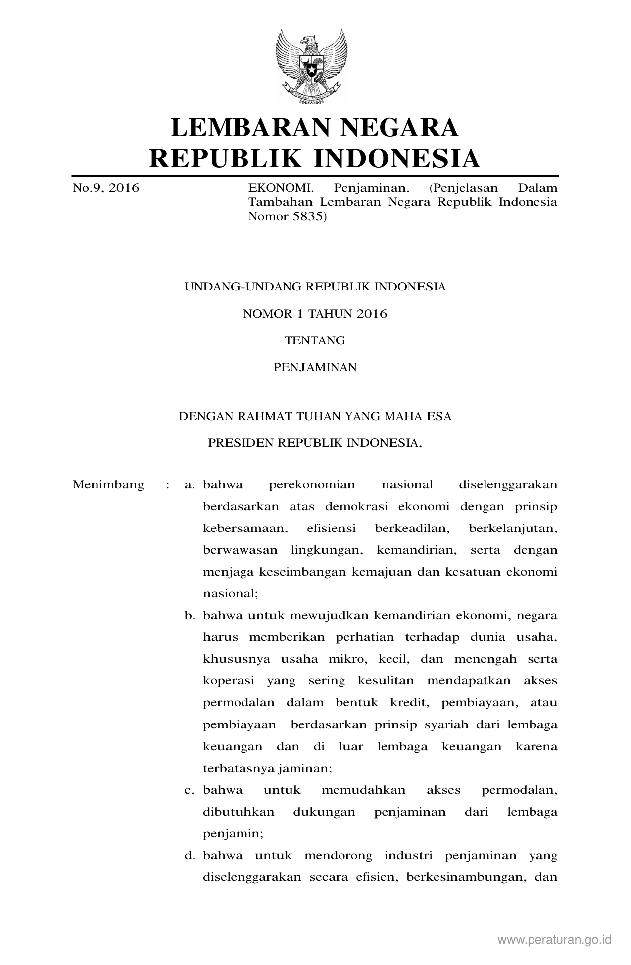 UU Nomor 1 Tahun 2016 | Undang-Undang Nomor 1 Tahun 2016 tentang PENJAMINAN