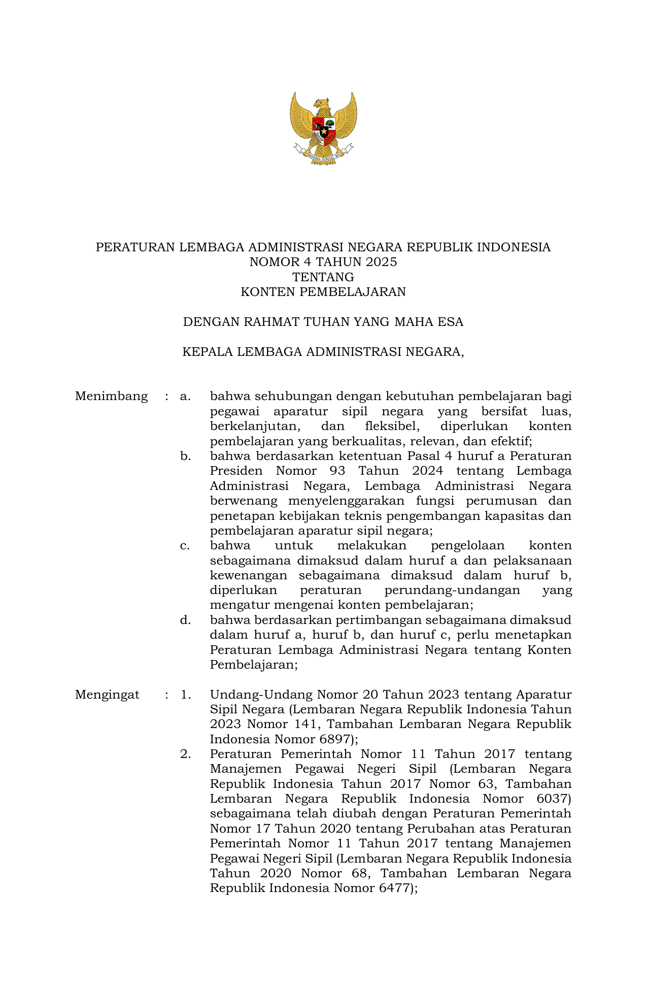 PERBAN Nomor 4 Tahun 2025 | Peraturan Badan Nomor 4 Tahun 2025 tentang Konten Pembelajaran