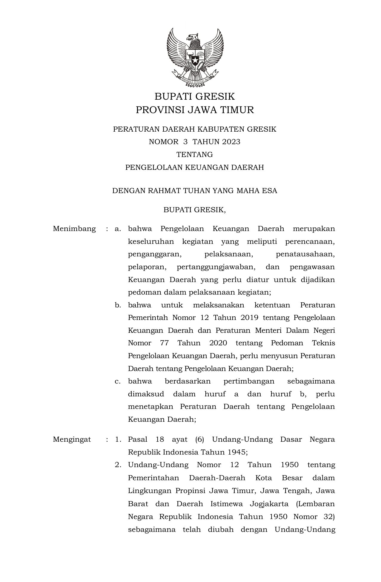 PERDA Nomor 3 Tahun 2023 | Peraturan Daerah Nomor 3 Tahun 2023 tentang PENGELOLAAN KEUANGAN DAERAH