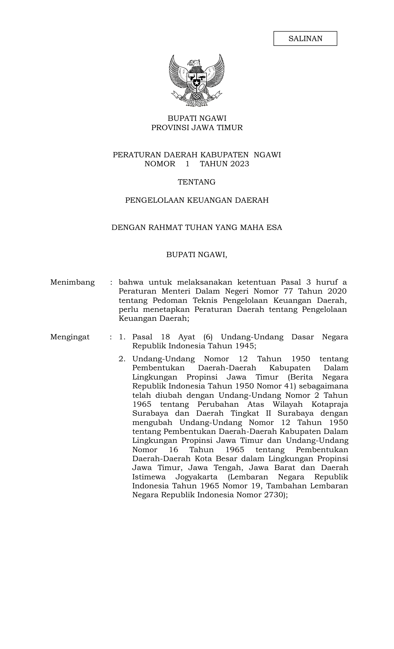 PERDA Nomor 1 Tahun 2023 | Peraturan Daerah Nomor 1 Tahun 2023 tentang PENGELOLAAN KEUANGAN DAERAH