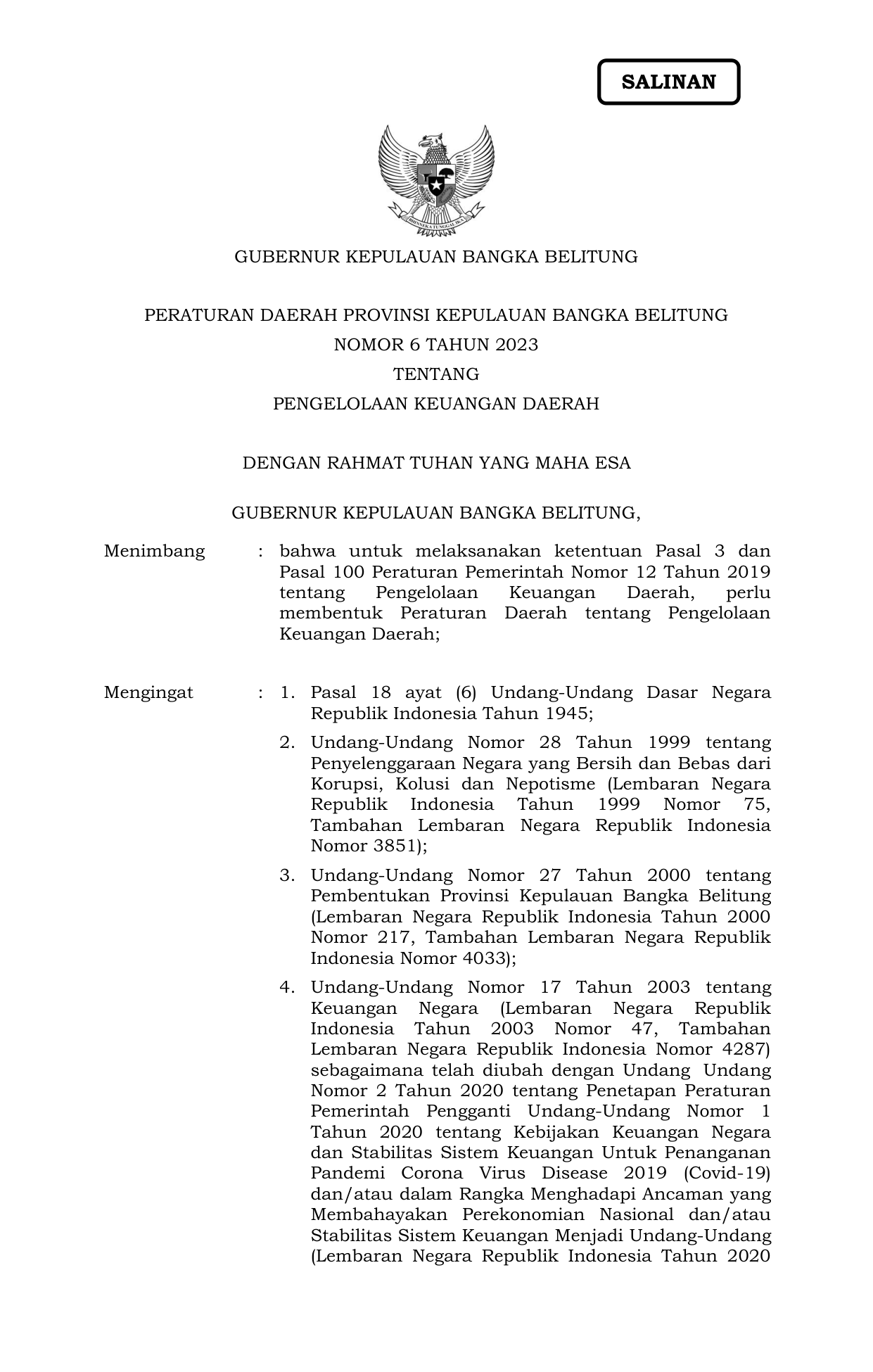 PERDA Nomor 6 Tahun 2023 | Peraturan Daerah Nomor 6 Tahun 2023 tentang PENGELOLAAN KEUANGAN DAERAH