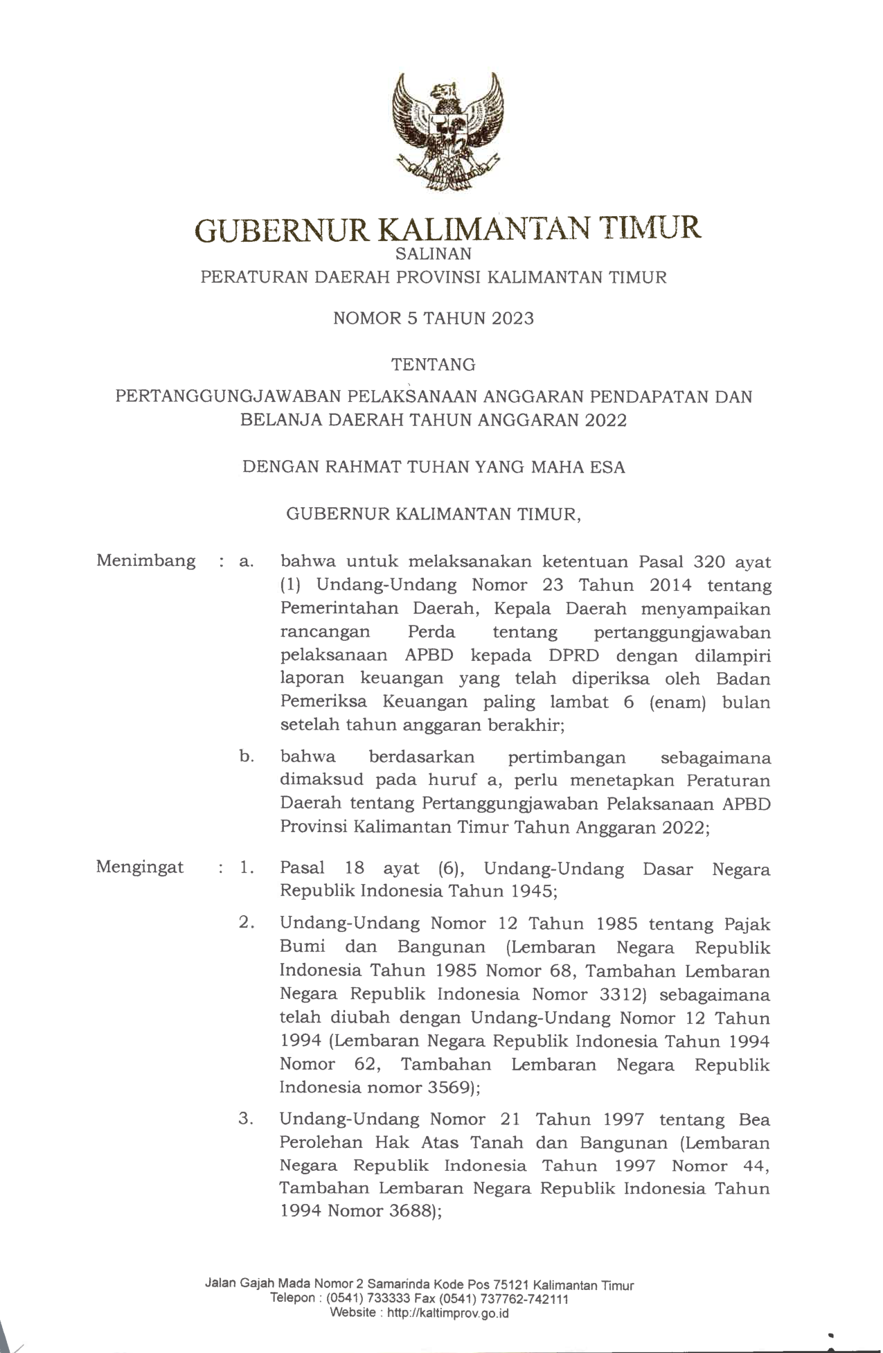 PERDA Nomor 5 Tahun 2023 | Peraturan Daerah Nomor 5 Tahun 2023 tentang PERTANGGUNGJAWABAN PELAKSANAAN ANGGARAN PENDAPATAN DAN BELANJA DAERAH TAHUN ANGGARAN 2022