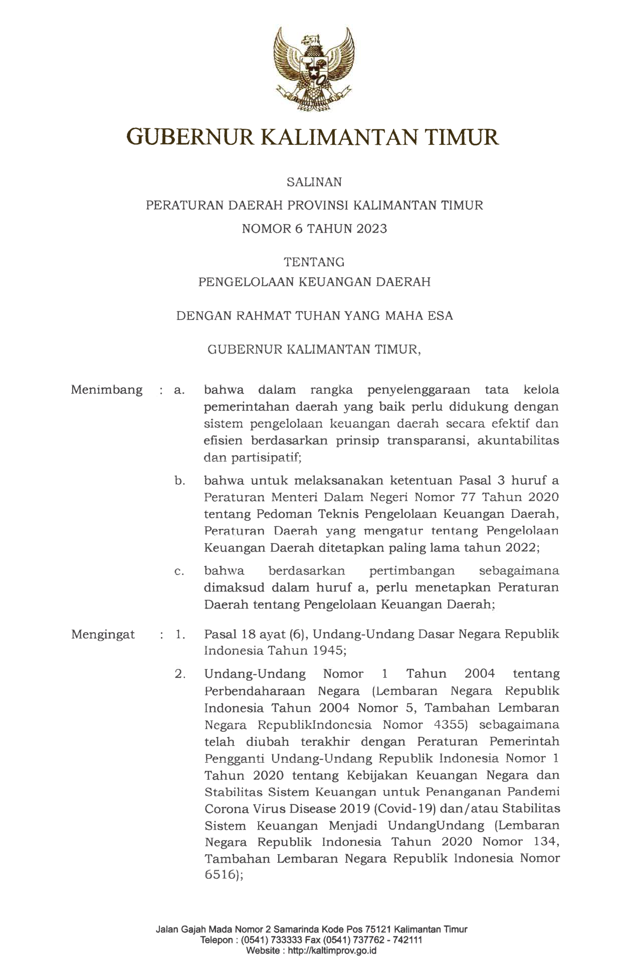 PERDA Nomor 6 Tahun 2023 | Peraturan Daerah Nomor 6 Tahun 2023 tentang PENGELOLAAN KEUANGAN DAERAH