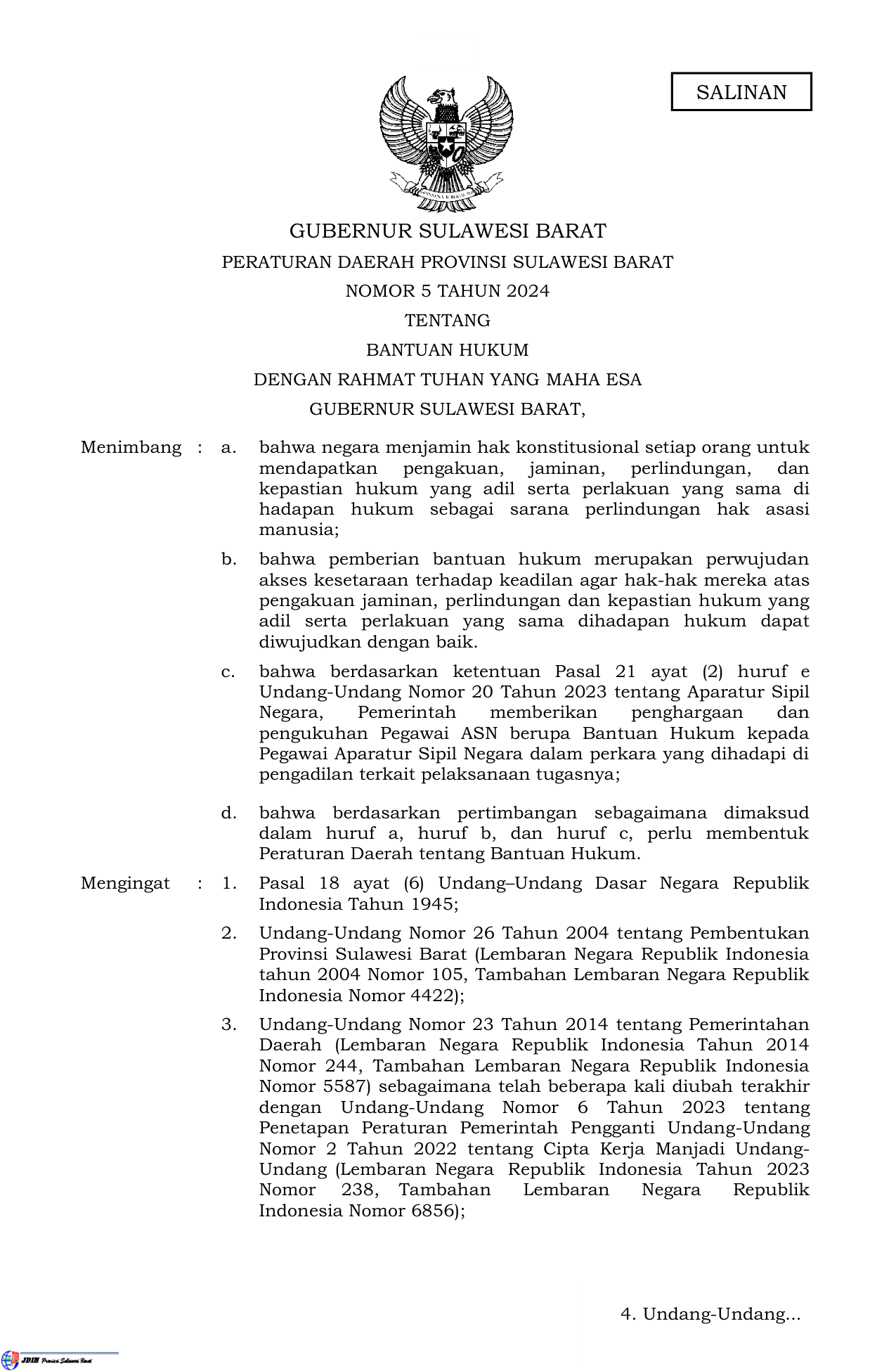 PERDA Nomor 5 Tahun 2024 | Peraturan Daerah Nomor 5 Tahun 2024 tentang BANTUAN HUKUM